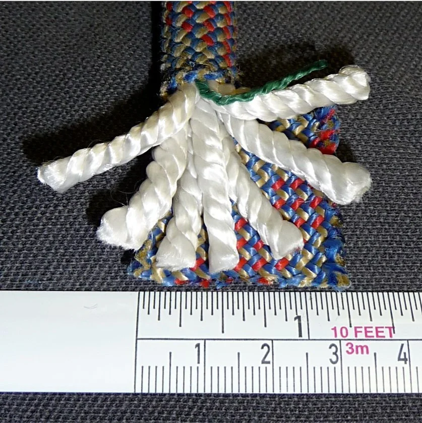 Kernmantle rope construction exposed by cutting open a rock climbing rope. Photo: David J. Fred